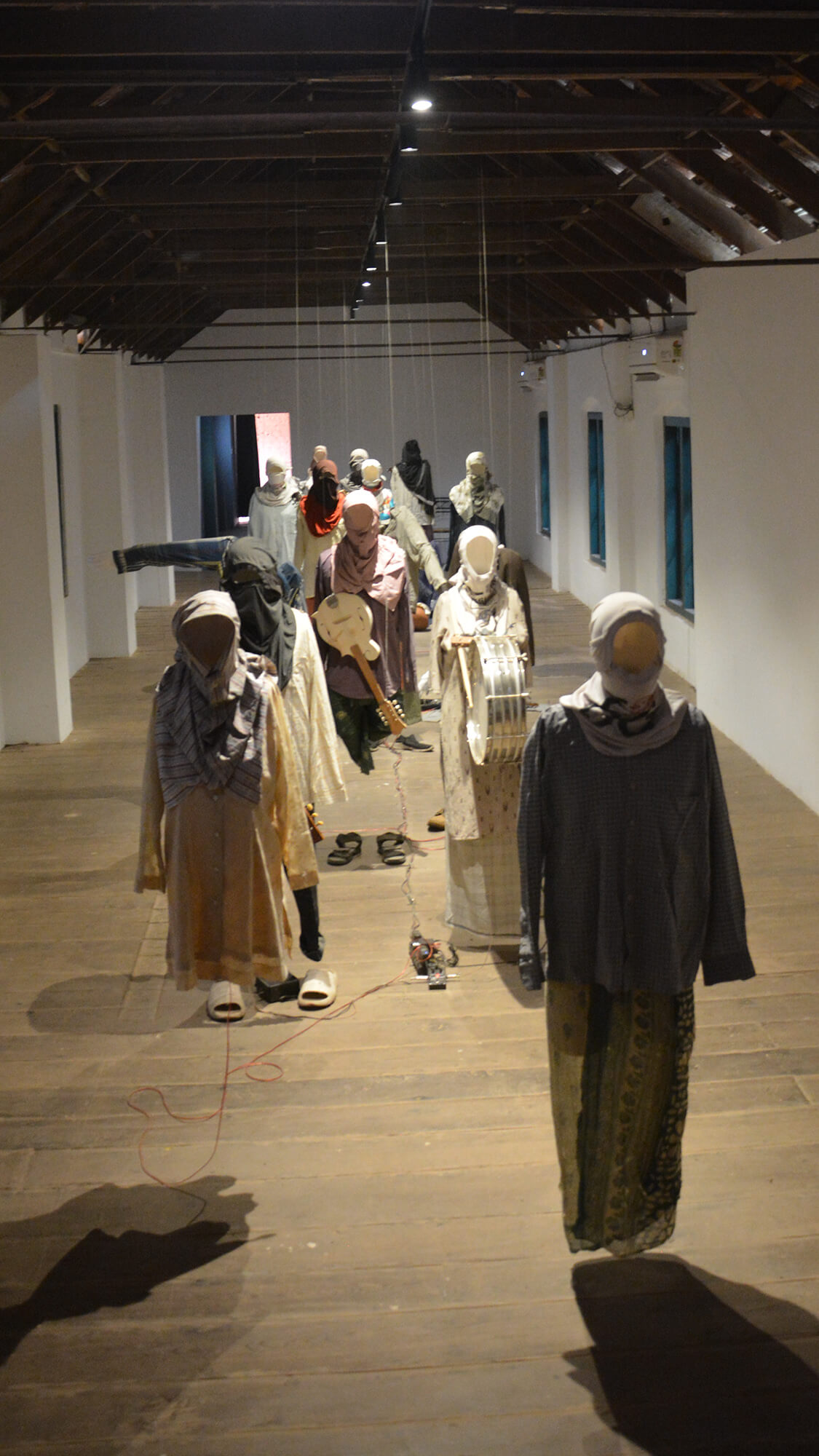 At Pepper House—another venue—there was an installation titled “Ghost Ballads” by Jompet K. It was a moving display of people living in conflict zones: musical instruments playing on their own and clothes hanging without bodies. It felt like a parade of ghosts, marching in protest into nowhere, seen by none. The music produced seemed like an echo of unheard calls. This piece had the power to provoke deep emotion and evoke sympathy for the unseen lives behind such conflicts.