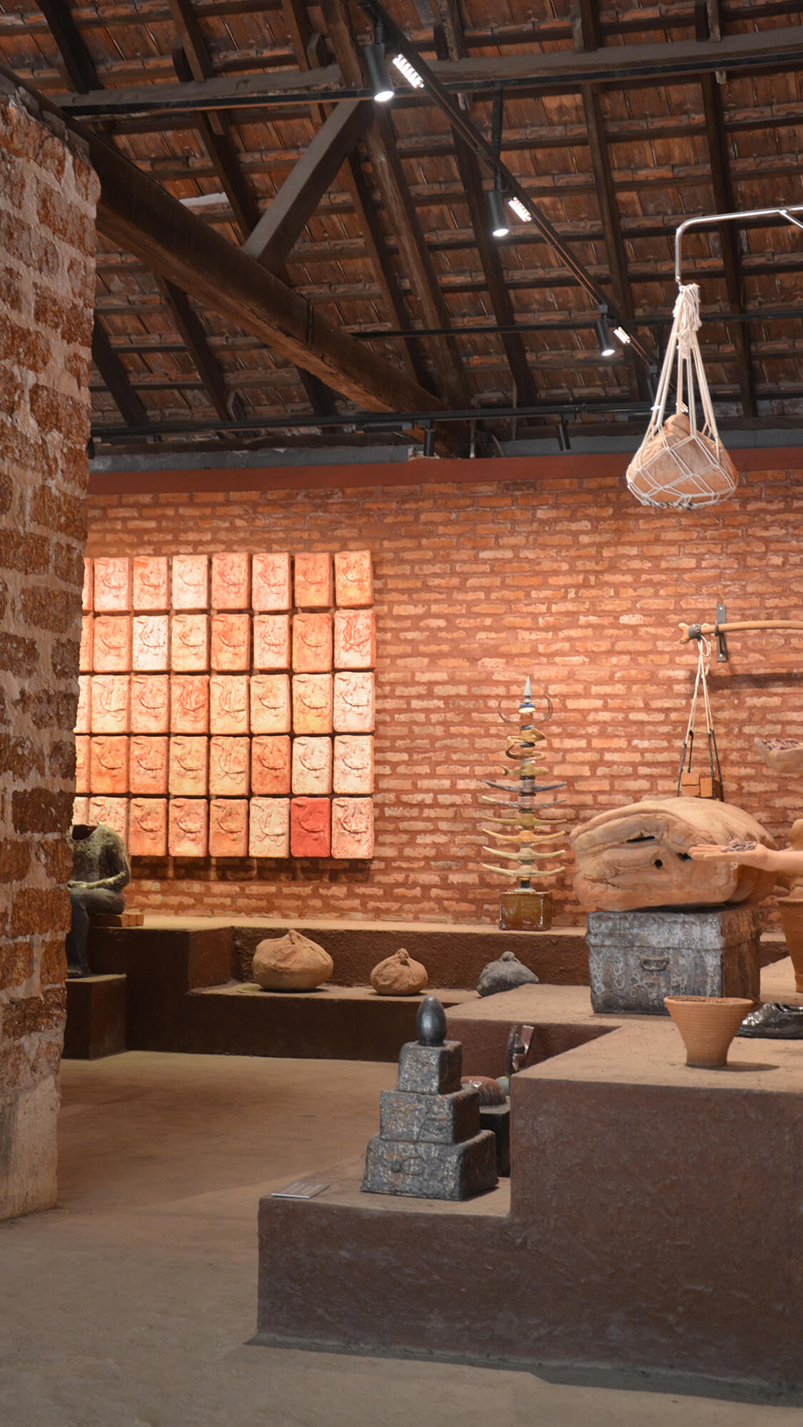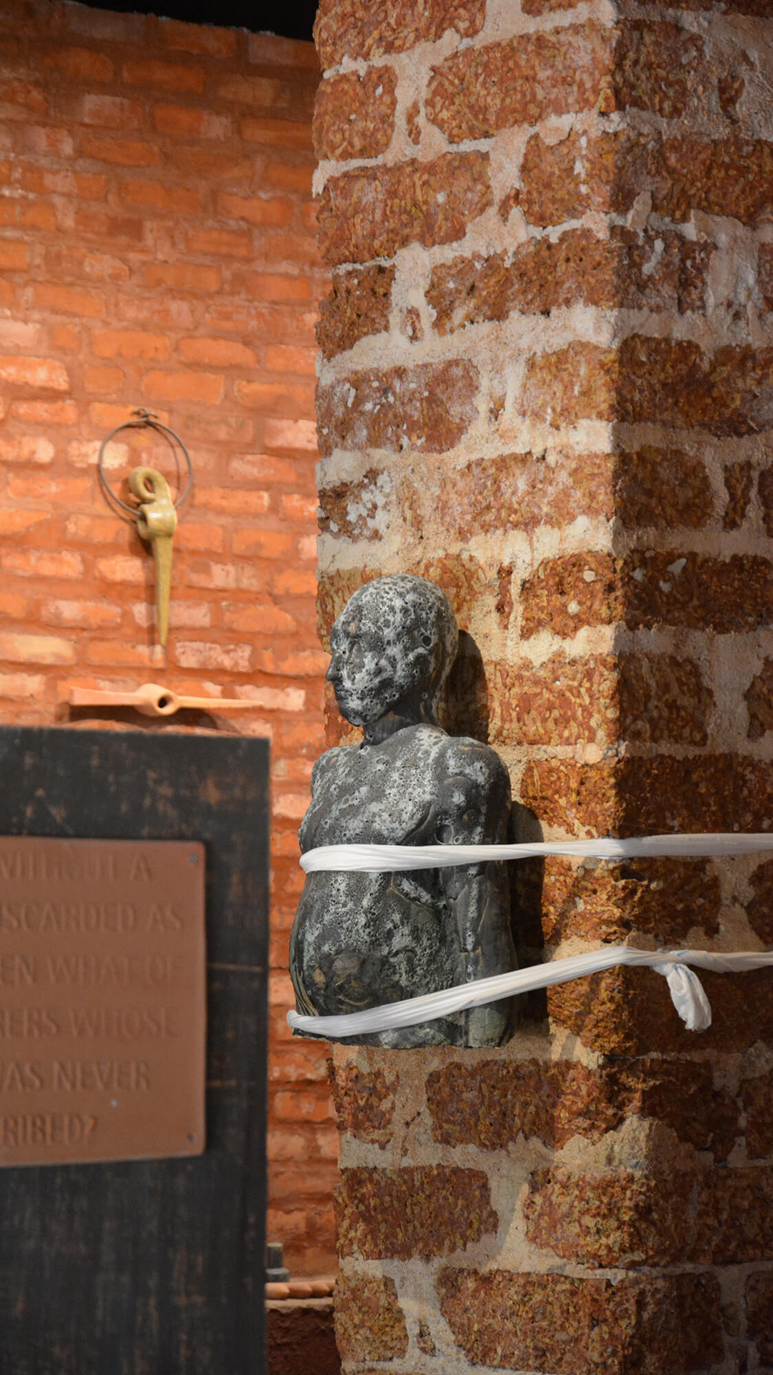 We entered a room filled with terracotta installations by Birendra Yadav, highlighting the lives of migrant labourers and the lives left unlived.