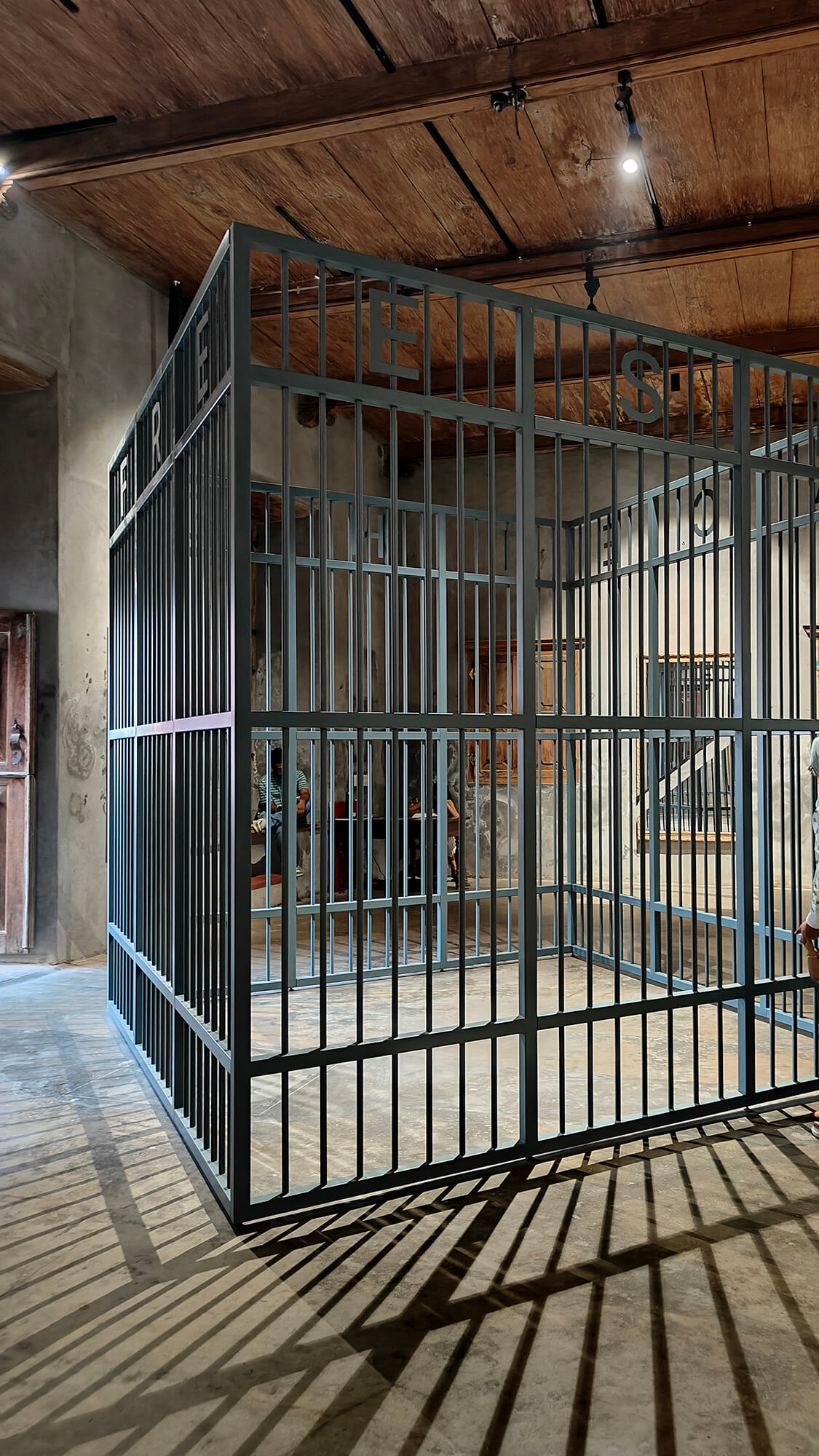 Over the next three days, as we continued exploring the various venues, we encountered astonishing works of art displayed in warehouses that once stored goods for trade—now abandoned. These have been transformed into lively museums during the Biennale. Each venue has witnessed the era of the spice trade and now hosts artists and art lovers – from all over India and abroad – instead.