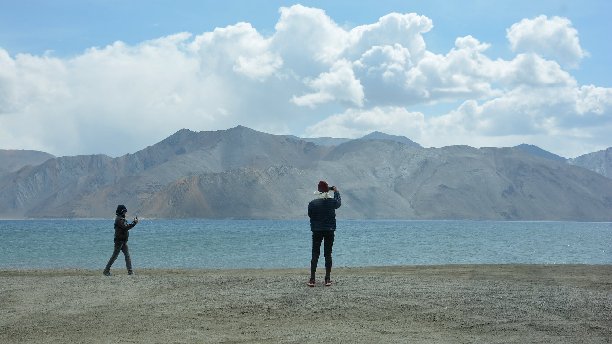 Pangong lakeThe next days were spent exploring Pangong Lake and Nubra Valley, two very different landscapes—one a majestic lake at a high altitude, the other a valley along a river with sand dunes. We faced some scares while crossing the highest motorable pass, Chang La, to reach Pangong as oxygen became very rare at that altitude.