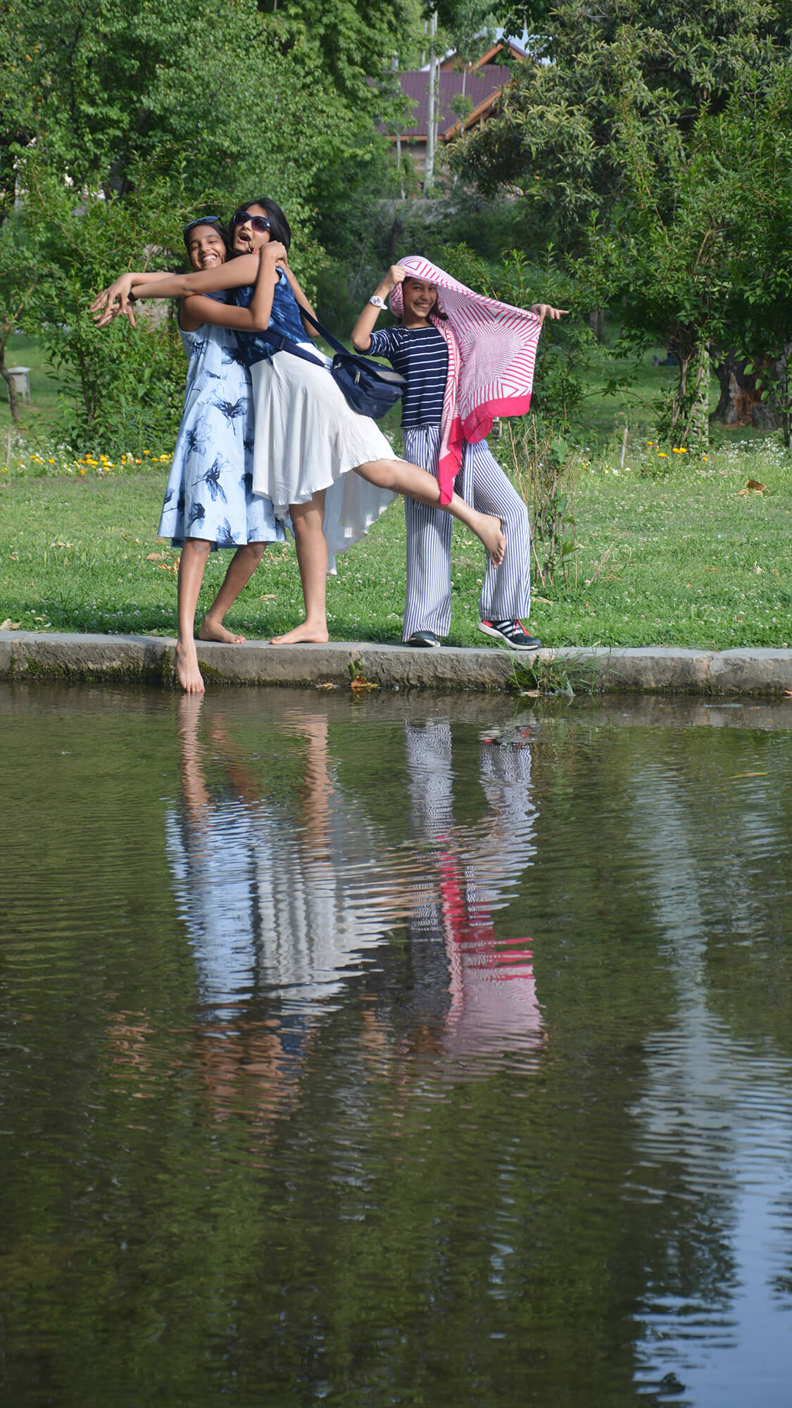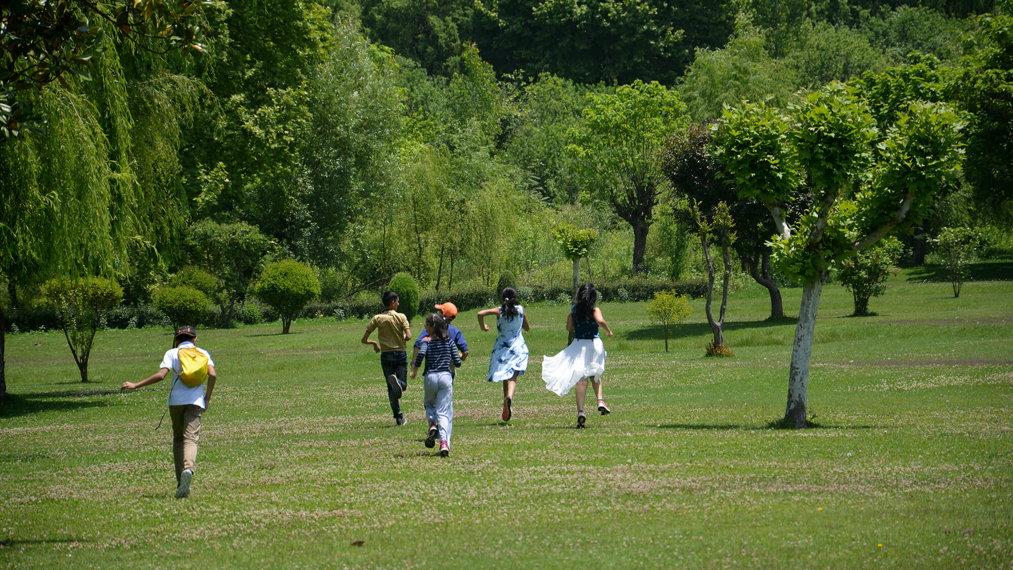 From there, we moved to the Botanical Garden at the foothills, with large expansive green meadows surrounded by chinar and pine trees. The excited children ran gleefully on the meadow,racing to the base of the mountain. With sixteen of us together, a joyful mood was set for exploring the next garden—the magnificent Nishat Bagh.