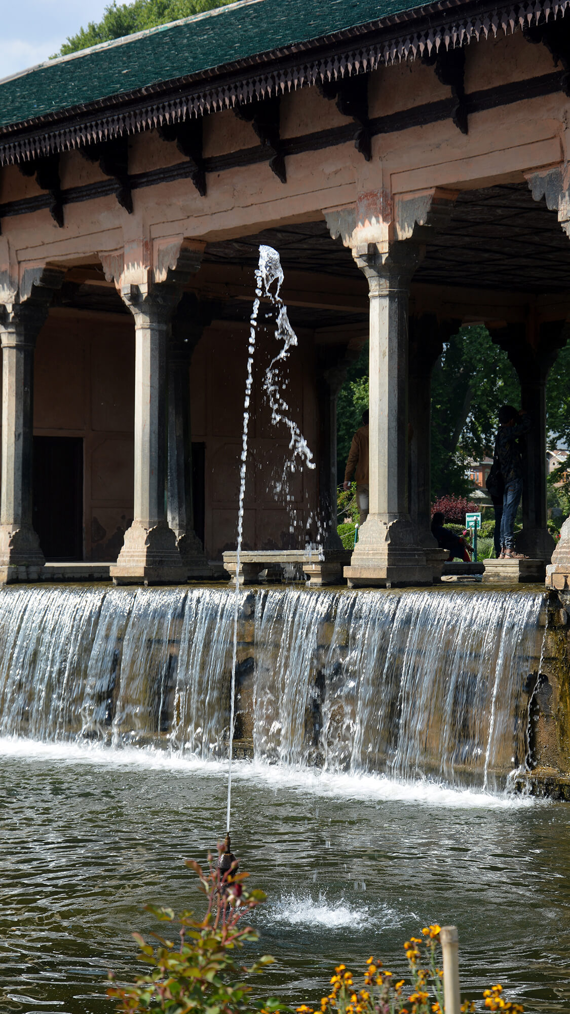 Nishat Bagh lies on the slope of the Zabarwan mountain range and descends gently towards Dal Lake. Laid out in the 17th century, this garden is exceptional in its setting and one of the finest Mughal Gardens in Kashmir. We encountered a series of terraces as we entered, each framed by mountains with the sky as a backdrop. What makes this place truly amazing is how water is leveraged to create a beautiful transition from one terrace to another. It falls, it cascades, it forms a chadar, creating a rhythmic pattern while traversing from one level to the next.