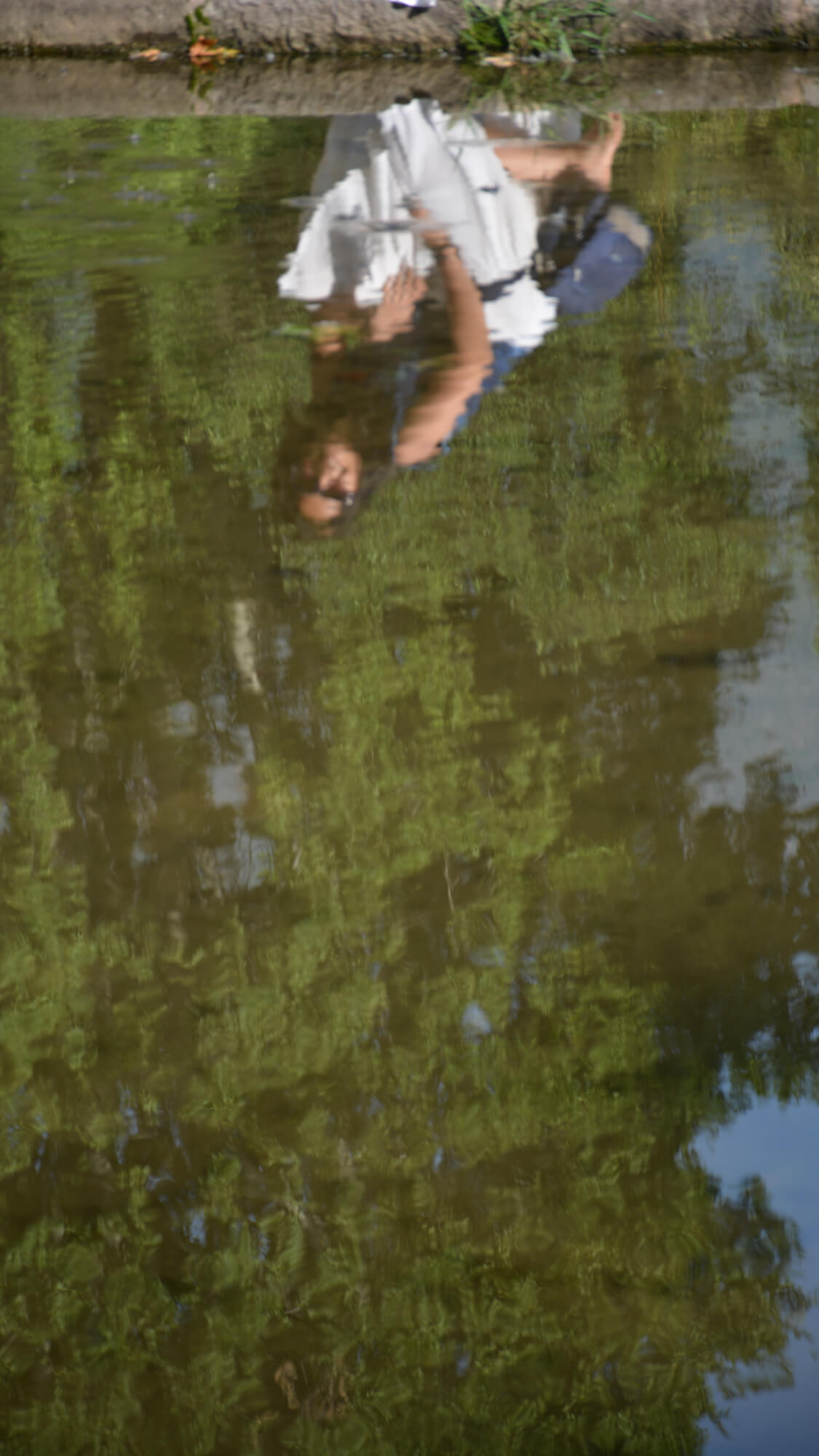 The water before the zenana changes its character, becoming a still pool, complementing the privacy it proposes and requires. Here, life stands still, making the visitor contemplative. The water reflects the sky, the trees, and engages anyone who wants to sit beside it.
